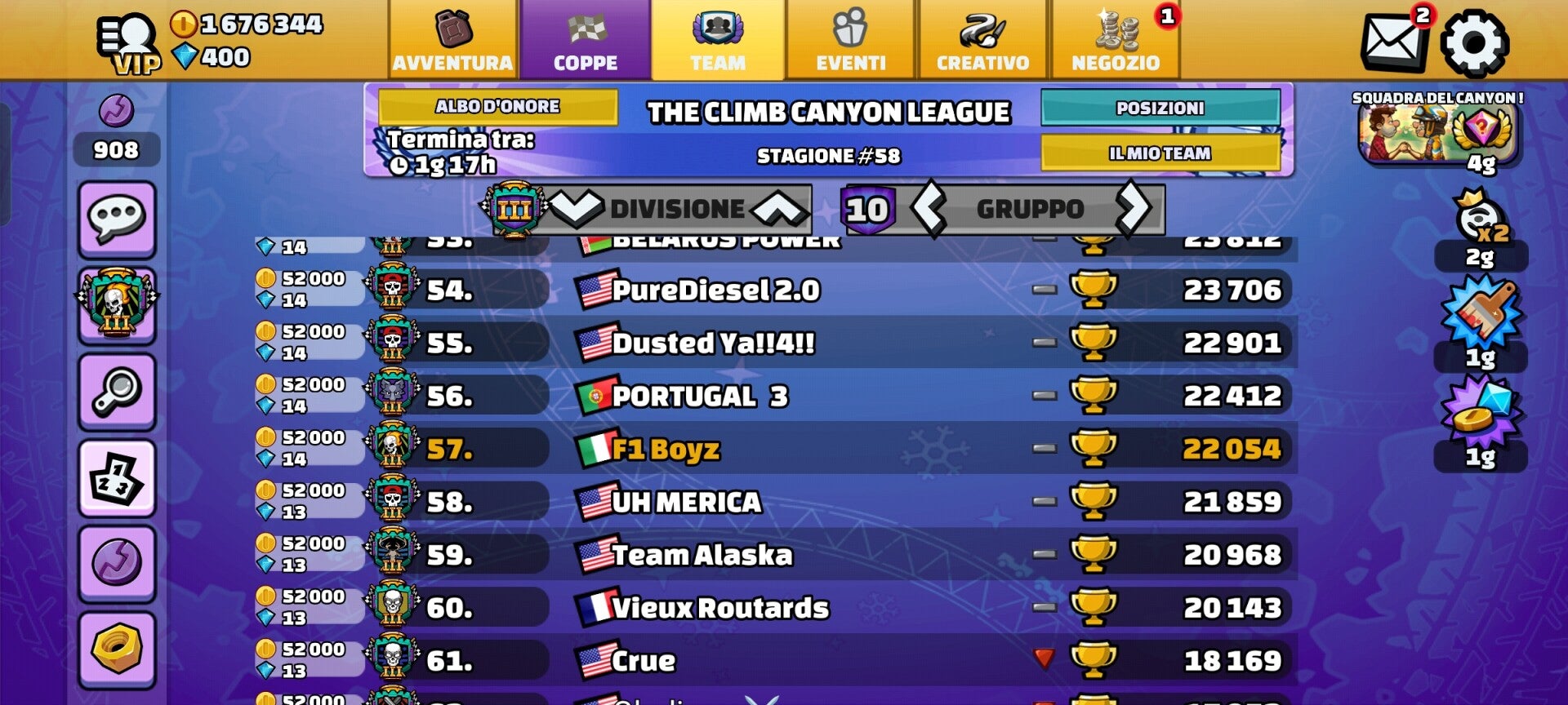 Benvenuti alla Canyon Cup, il torneo più prestigioso che vede sfidarsi i migliori team! Preparatevi per una competizione mozzafiato, ricca di adrenalina e colpi di scena. Qui si forgiano i campioni e si scrivono le leggende. Unitevi a noi per vivere l'emozione della Canyon Cup!